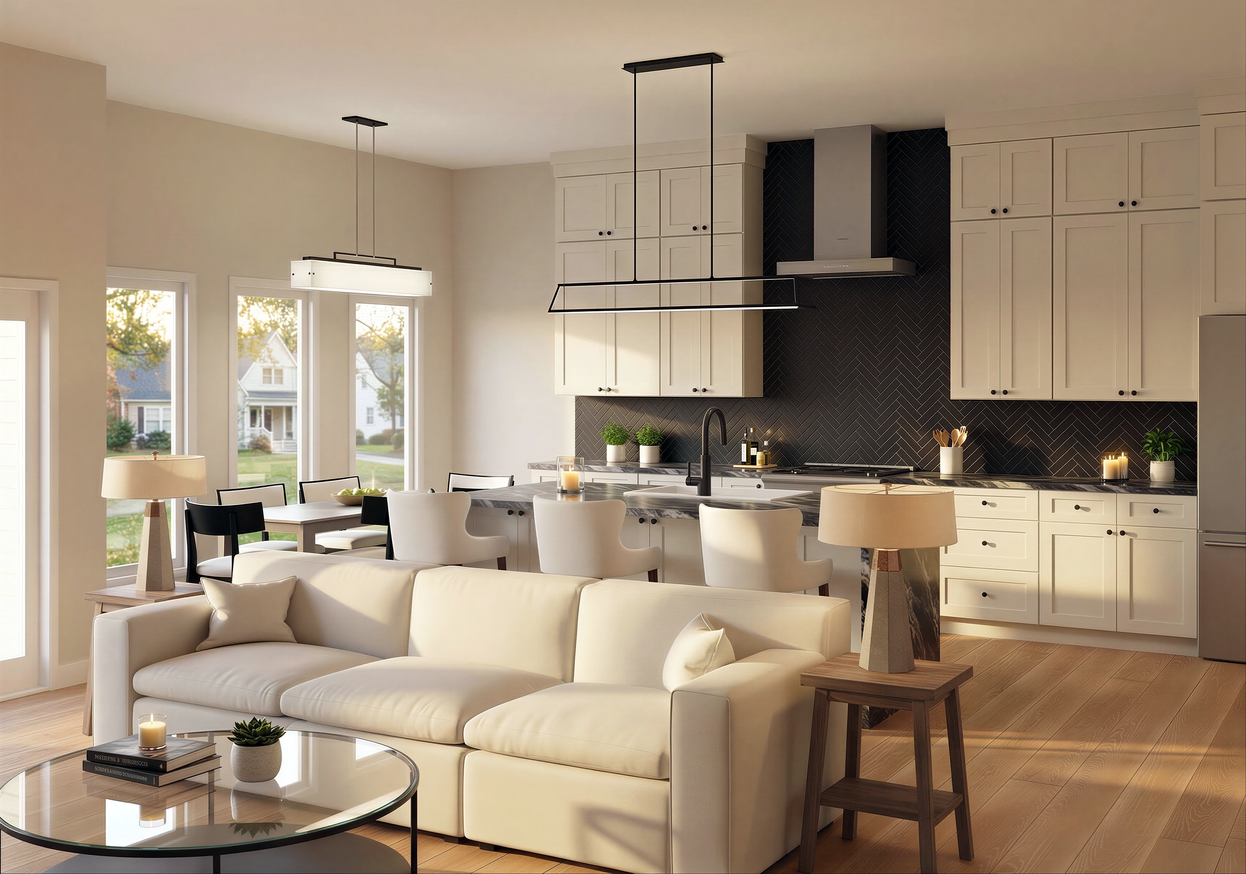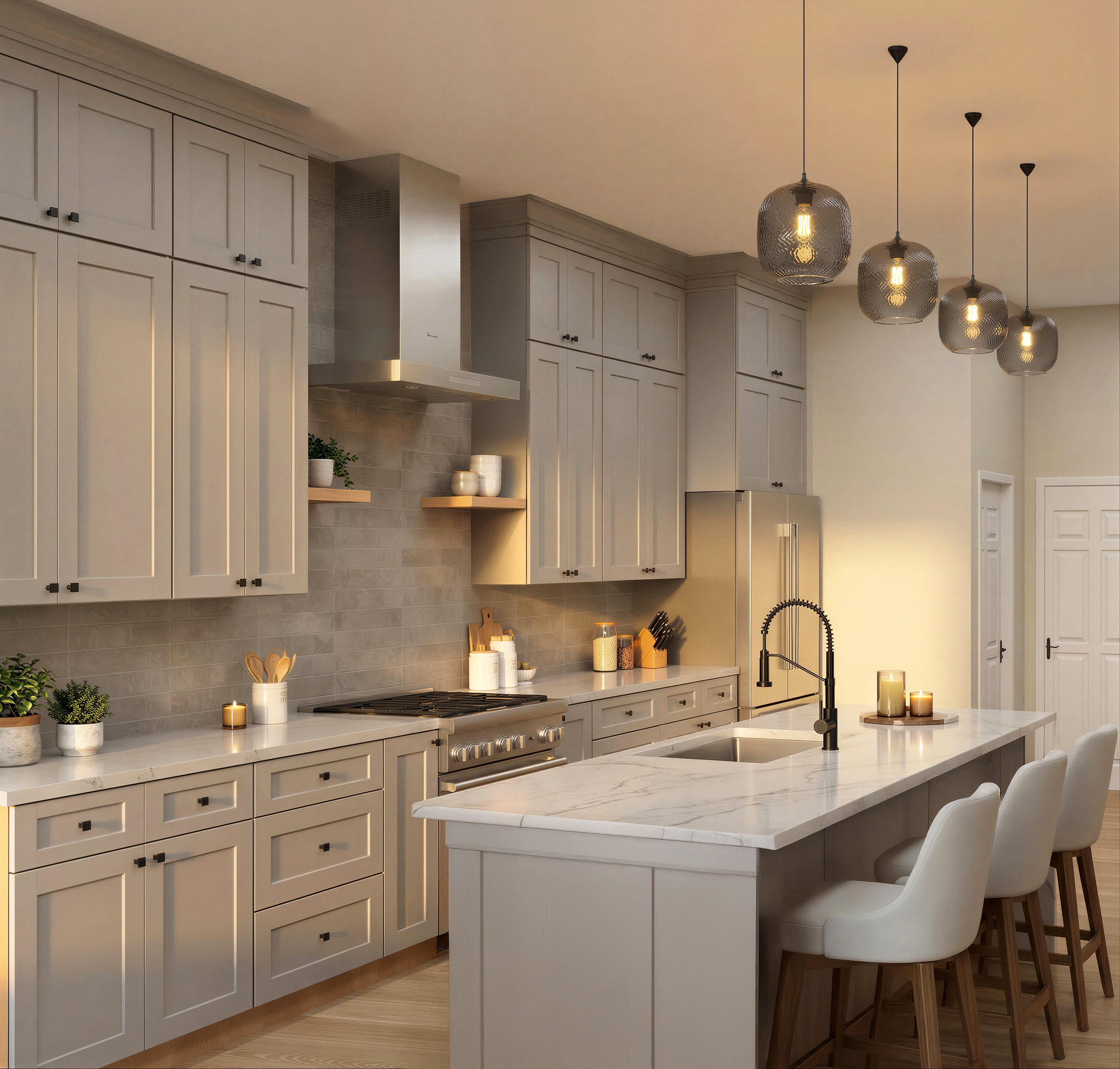 Kitchen layout and dimensions are exact to 961 Hank Aaron Drive floorplans. Final finishes and layout will vary with each home.